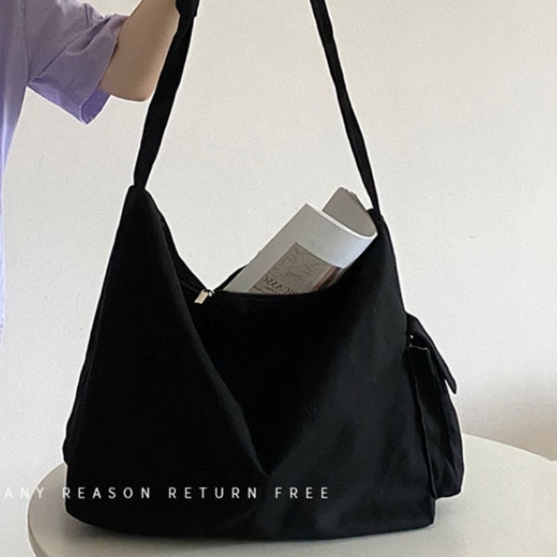 Ins New Female Student Korean Canvas Messenger Bag Casual Lazy Wind Shoulder Bag Joker Large Capacity Handbag
