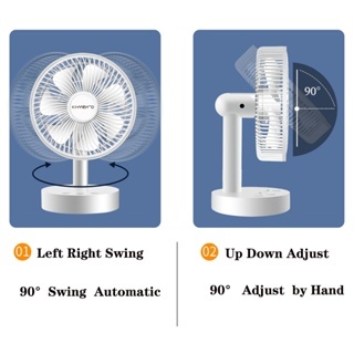 Kimviento 7200mAh USB Desk Fan 7 Speed Adjustable 720° Rotatable Desktop Table Fan with Strong Wind Quiet Operation Kipas USB Oscillating Fan For Outdoor Home School