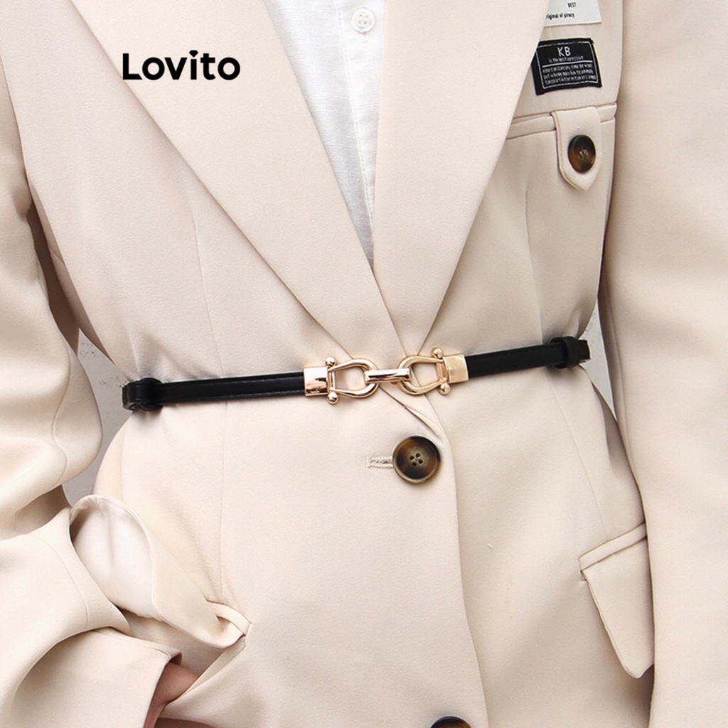 Lovito Casual Plain Basic Belt for Women L69AD040 (Black)