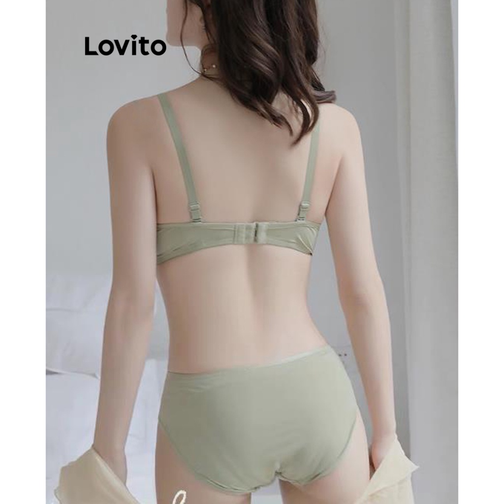 Lovito Casual Plain Basic Bralette for Women LNE39113 (Apricot/Light Green/Light Blue/Black)