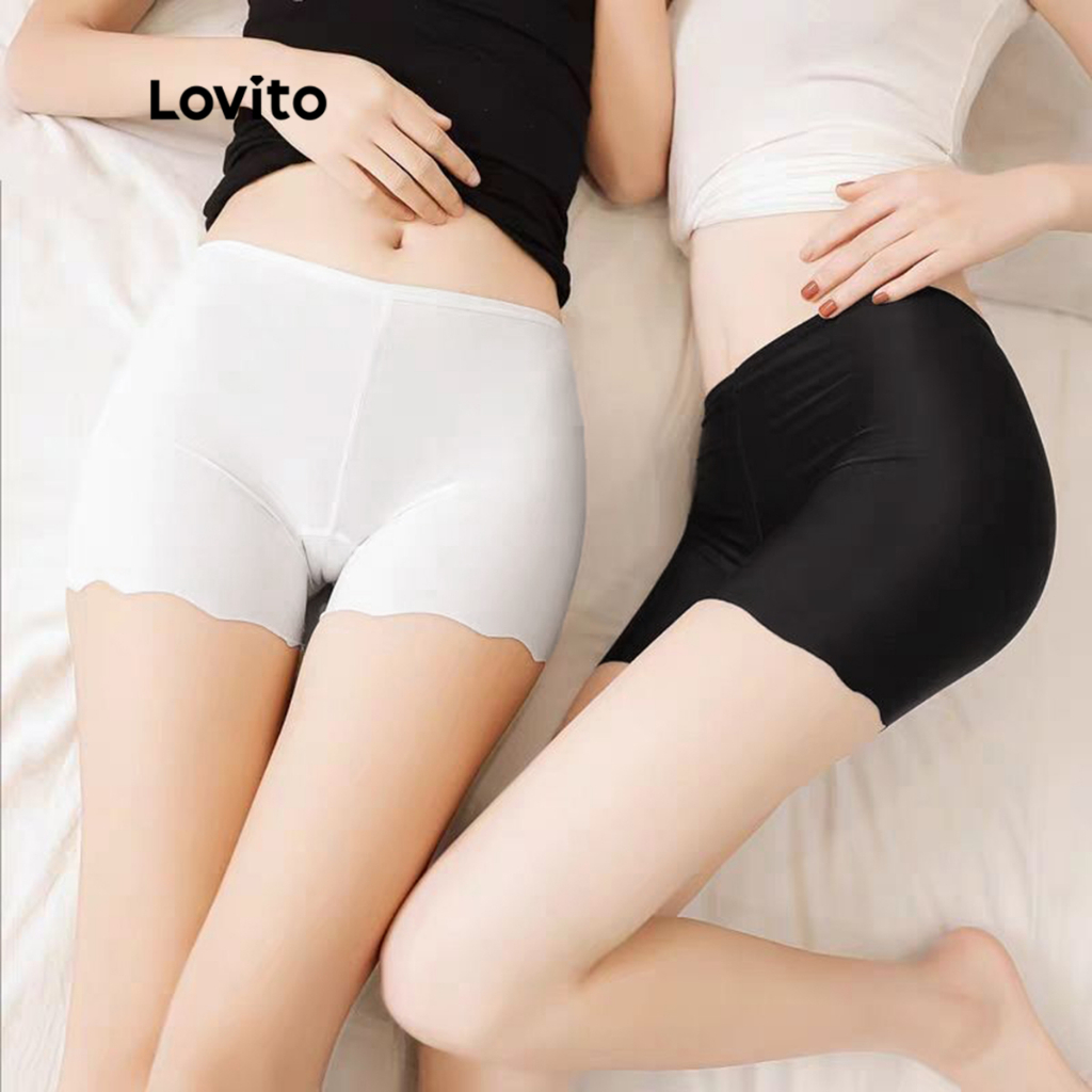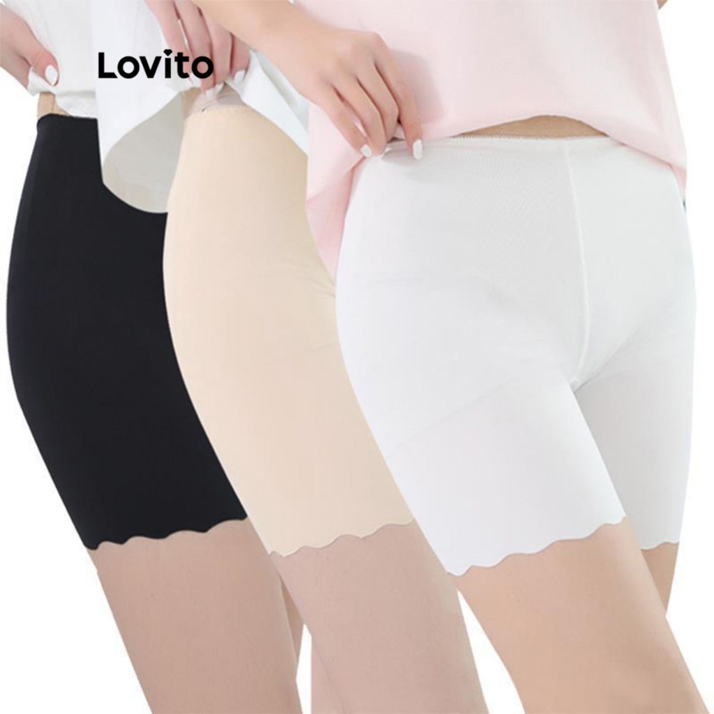 Lovito Casual Plain Round Boyshorts Safety Pants for Women L48L072 (Apricot/White/Black)