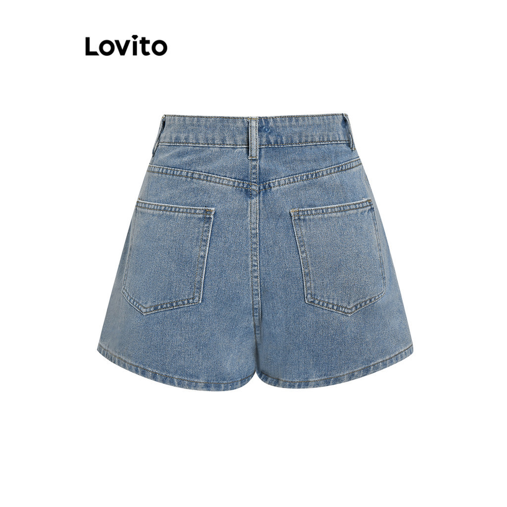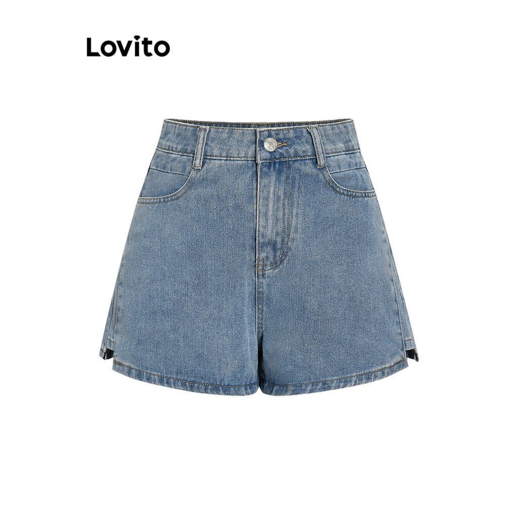 Lovito Casual Plain Split Pocket Denim Shorts for Women L68ED114 (Multi-color)