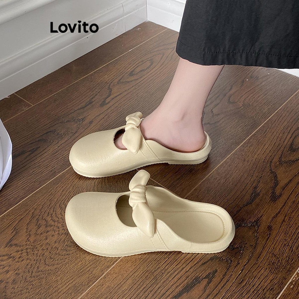 Lovito Cute Plain Knot Flat Sandals for Women LFA28042