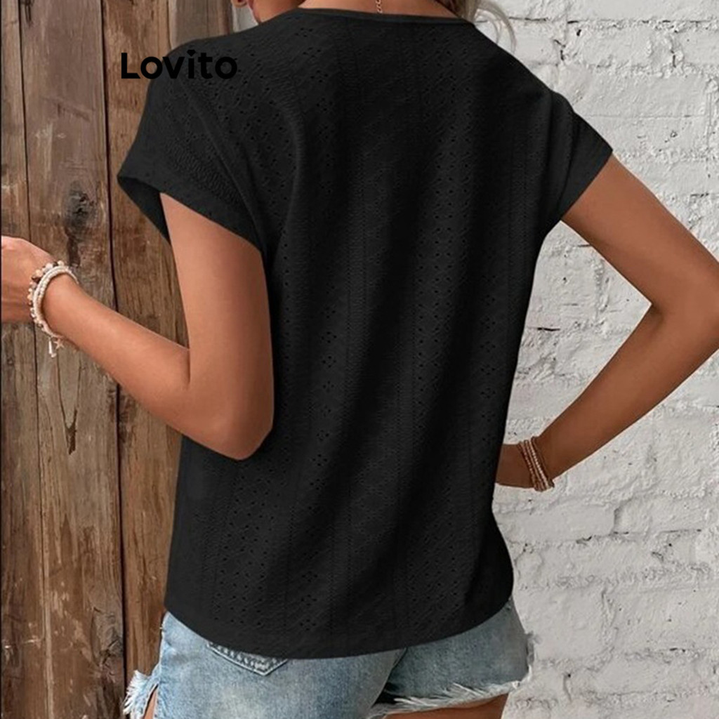 Lovito Elegant Patchwork Cut Out T-Shirt for Women LNE31085 (Multi-color)