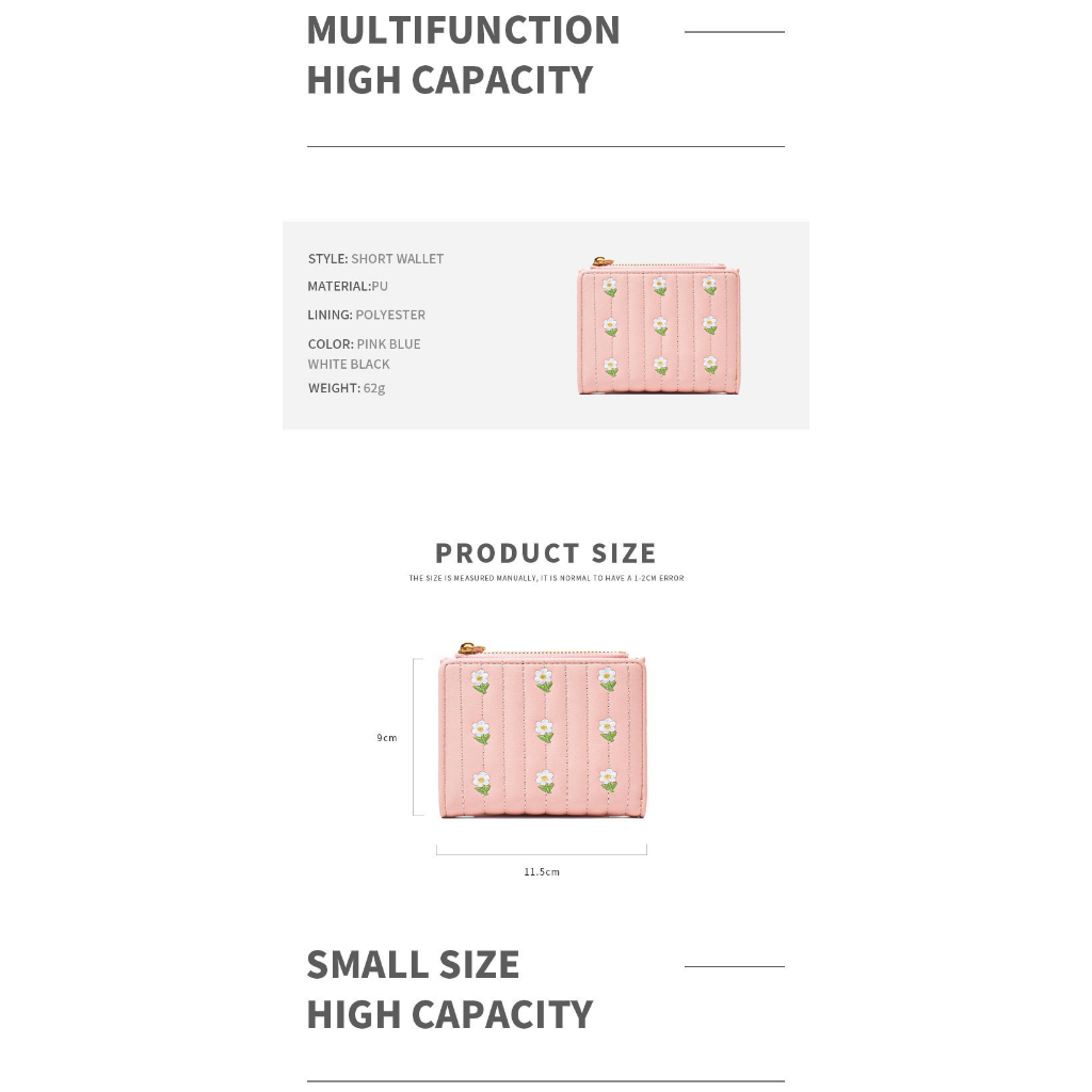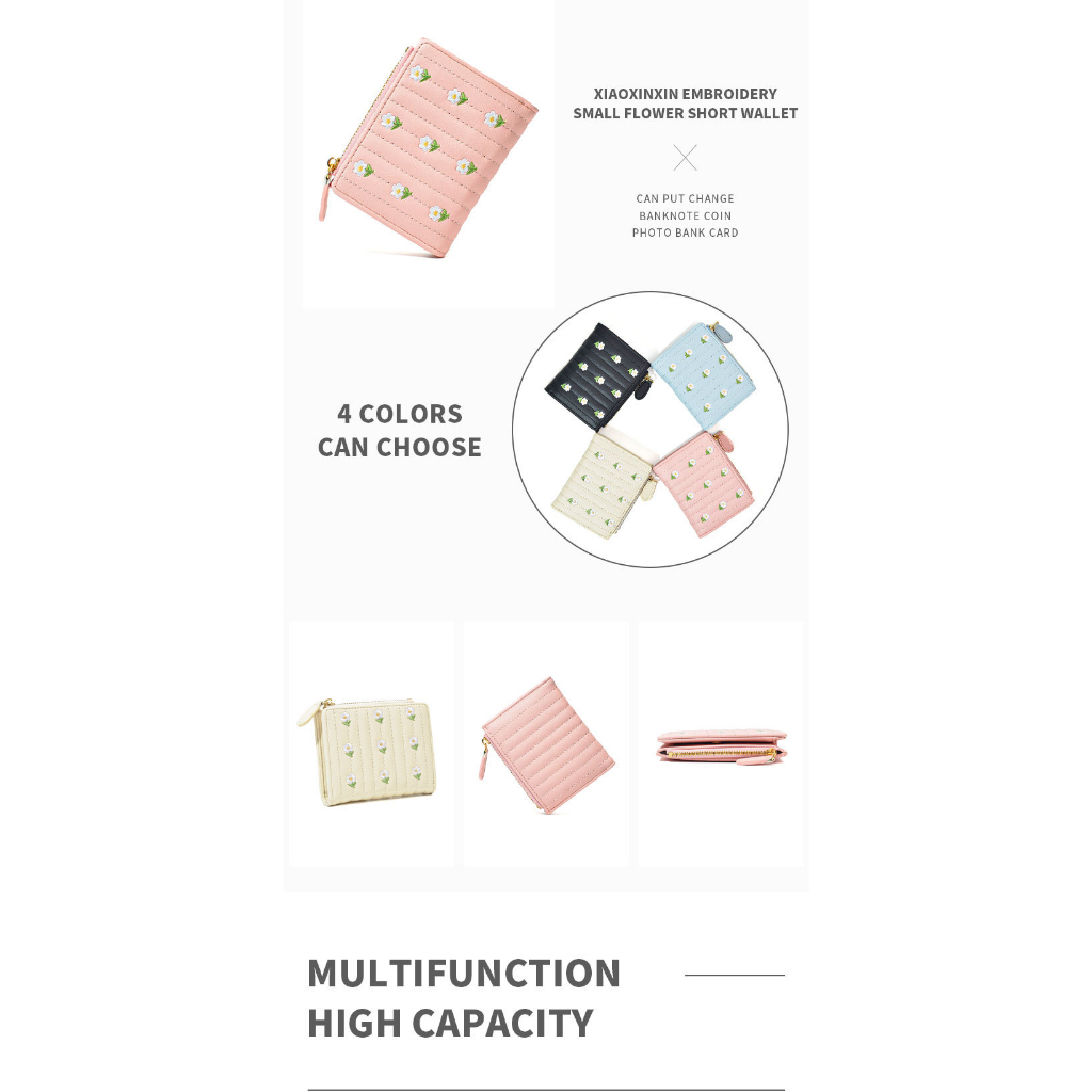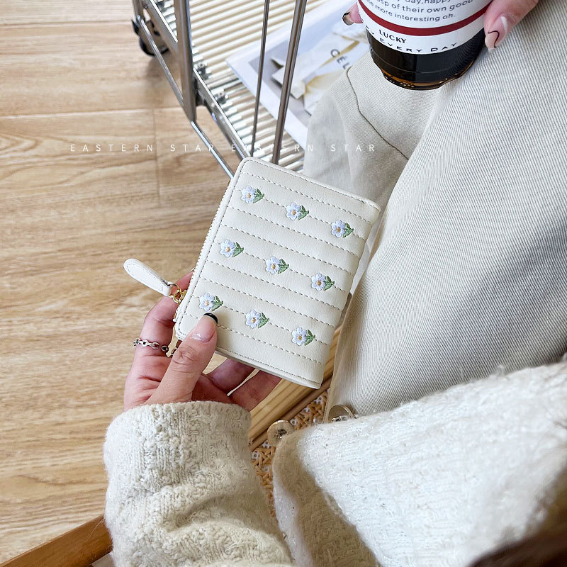 New Korean Version Embroidered Simple Cute Cropped Bifold Wallet For Woman