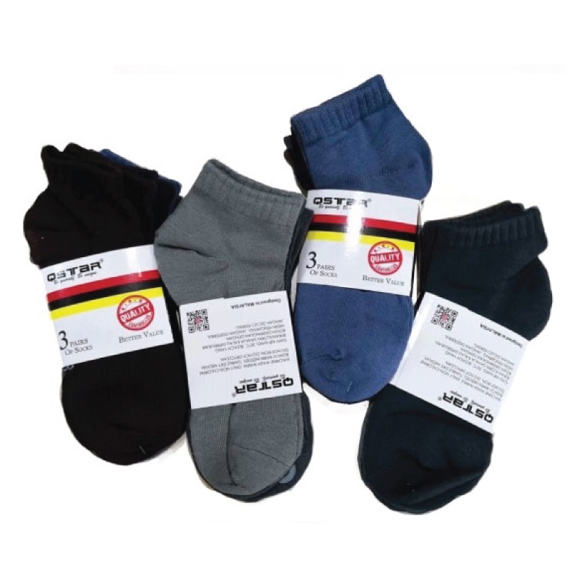 RIGHTWAY x QSTAR Office Premium Thick Plain Ankle Socks - Mixed Random Color - LS2035 (3 Pairs)