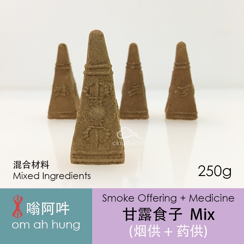 【SG】烟供+五色布食子 I 慈悲甘露食子 I 药供 I 元宝 食子 Smoke Offering + Cloth Cone I Medicine Incense I Ingot Cone I Tibetan Incense Puja