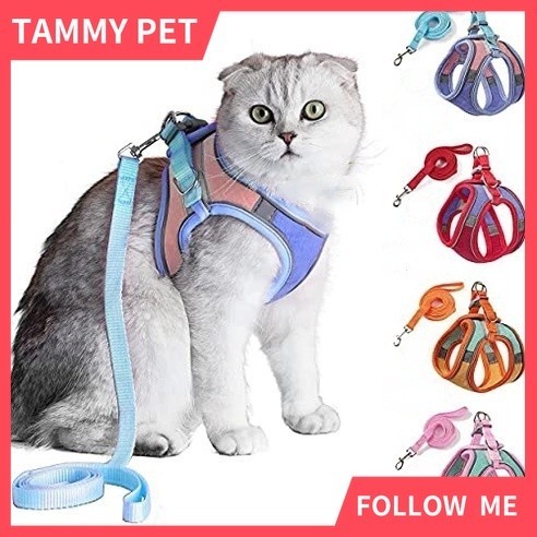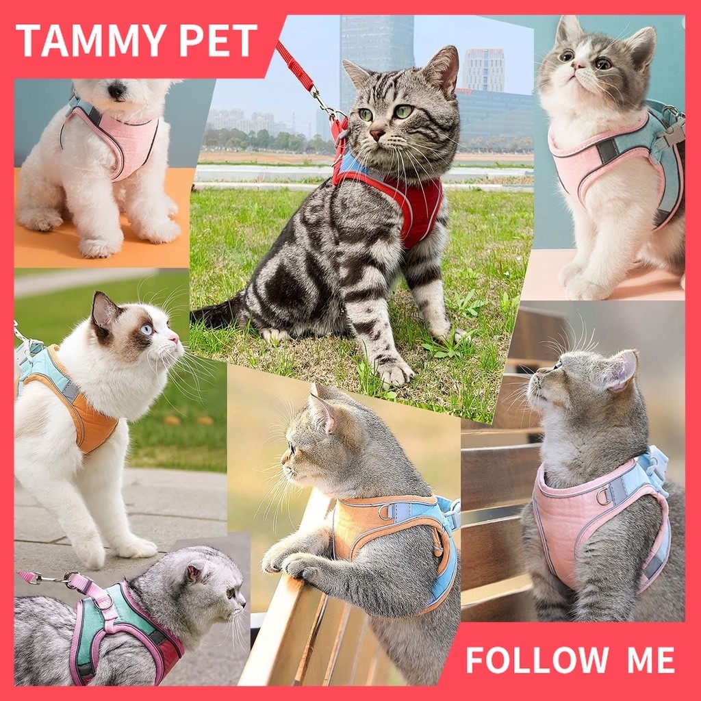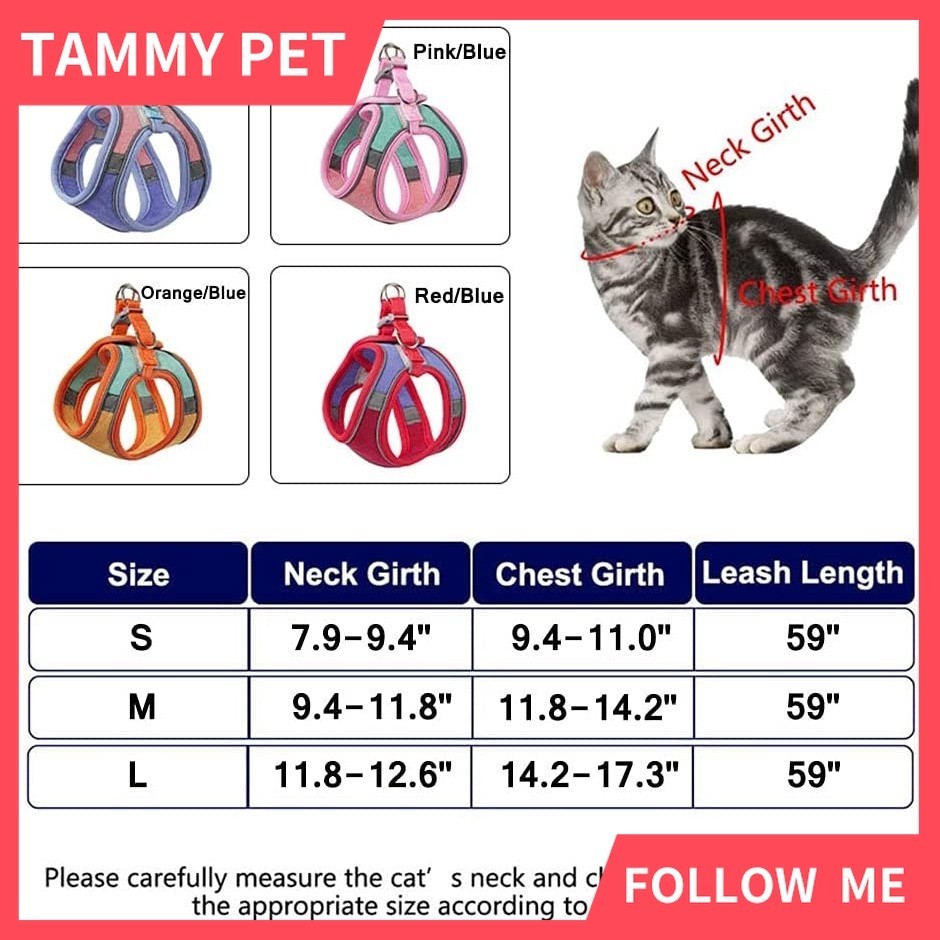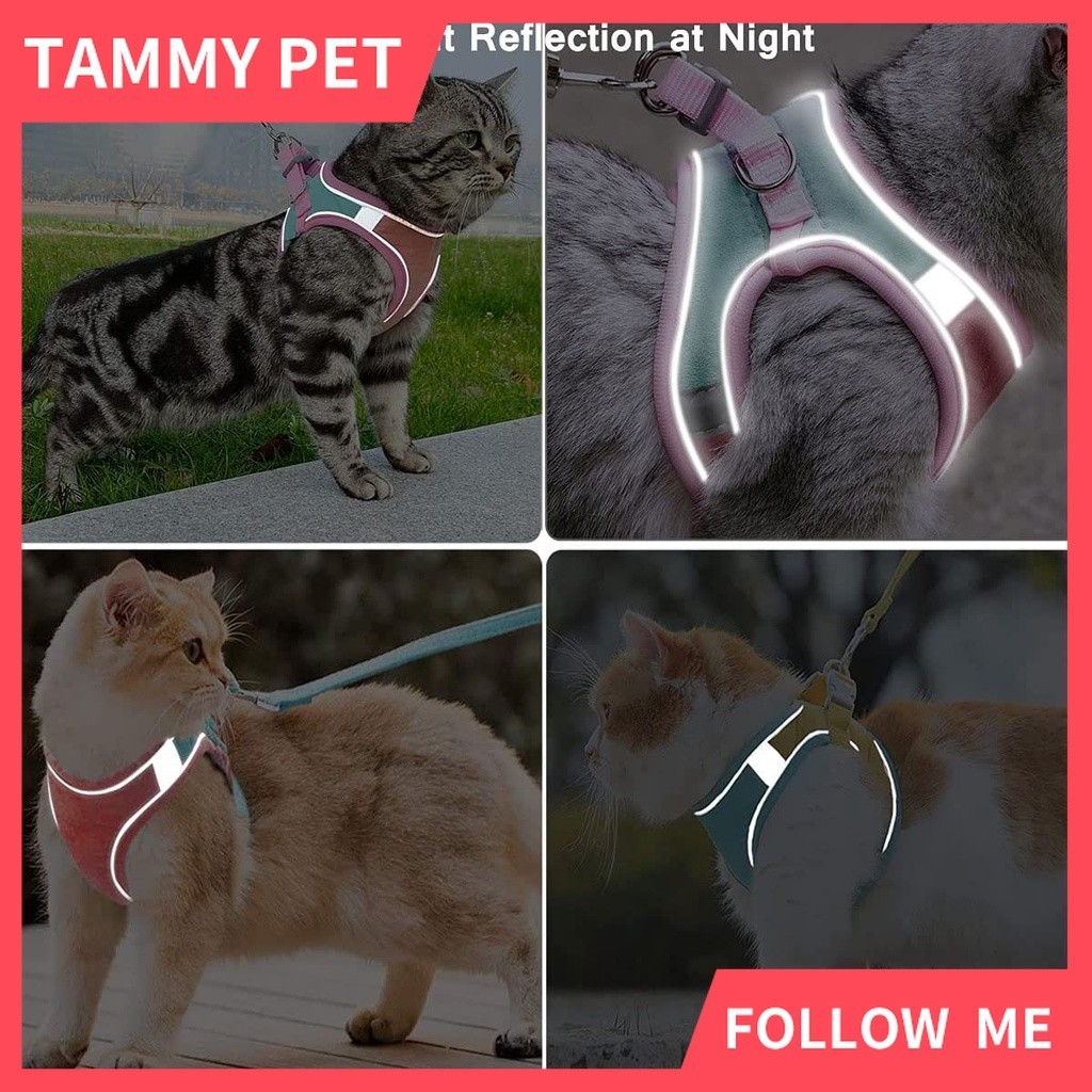 SG Shipment Cat Harness,Escape Proof Kitten Vest Harness for Walking,Easy Control Night Safe Pet Harness for Kitten Puppy Rabbit