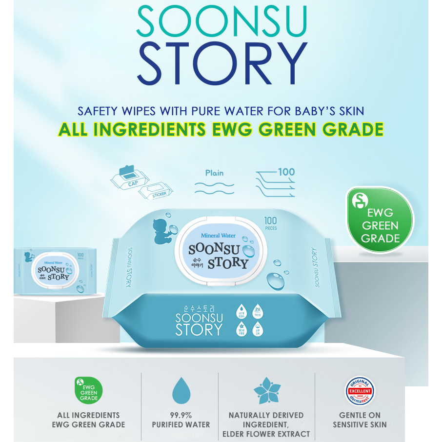 SoonSu Story safe baby wet wipes / EWG Green Grade / Korean Baby wipes wet tissue by Let's Mary Store Official