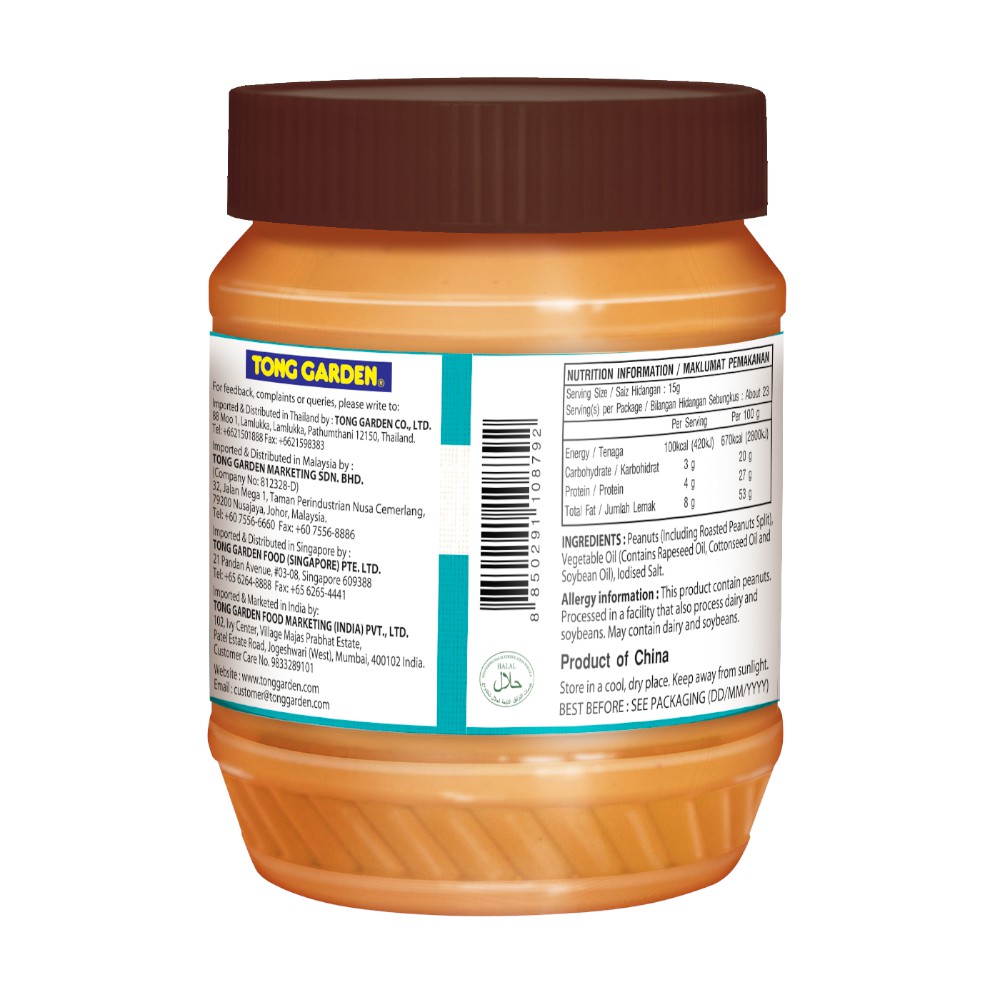 Tong Garden Unsweetened Crunchy Peanut Butter 340G (Halal)
