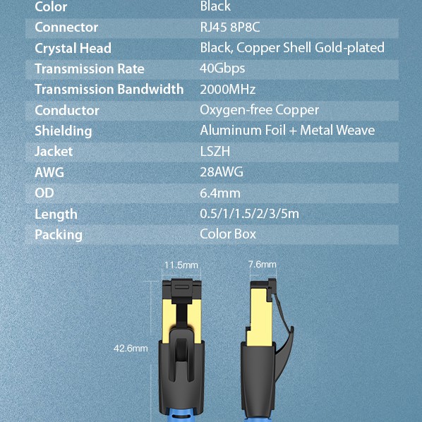 Vention Ethernet Cable RJ45 CAT8 40Gps 2000Mhz Professional High-speed Gaming Cable