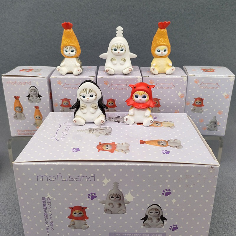 With Box Cartoon Anime Mofusand Shark Cat Frying Shrimp Tiger Shark Whale My Melody Kuromi Animal Cat Q Version PVC Action Figures Model Doll Toys